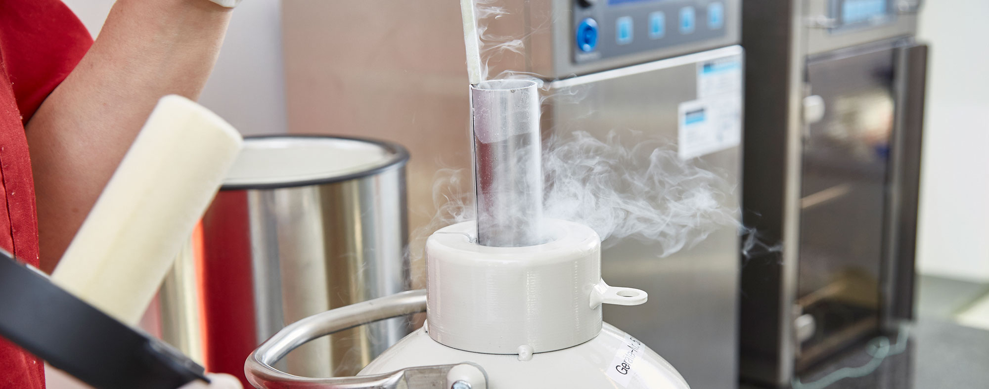 The process of freezing unfertilised eggs takes place in several steps. Firstly, the woman's natural cycle is hormonally stimulated so that several eggs mature at the same time. This phase usually lasts around ten to twelve days and is closely monitored by ultrasound examinations and blood tests. Once the eggs have reached optimal maturity, they are gently retrieved under a light anaesthetic by means of a so-called follicular puncture. Once the eggs have been retrieved, they are frozen using the modern method of vitrification. Vitrification is an ultra-fast freezing process that prevents ice crystals from forming in the egg cell, which could damage its structure. Shock freezing and storage in liquid nitrogen at around minus 196 degrees Celsius means that the quality of the egg cells remains virtually unchanged. Theoretically, these cells can be stored for decades and used at a later date without compromising their ability to fertilise.